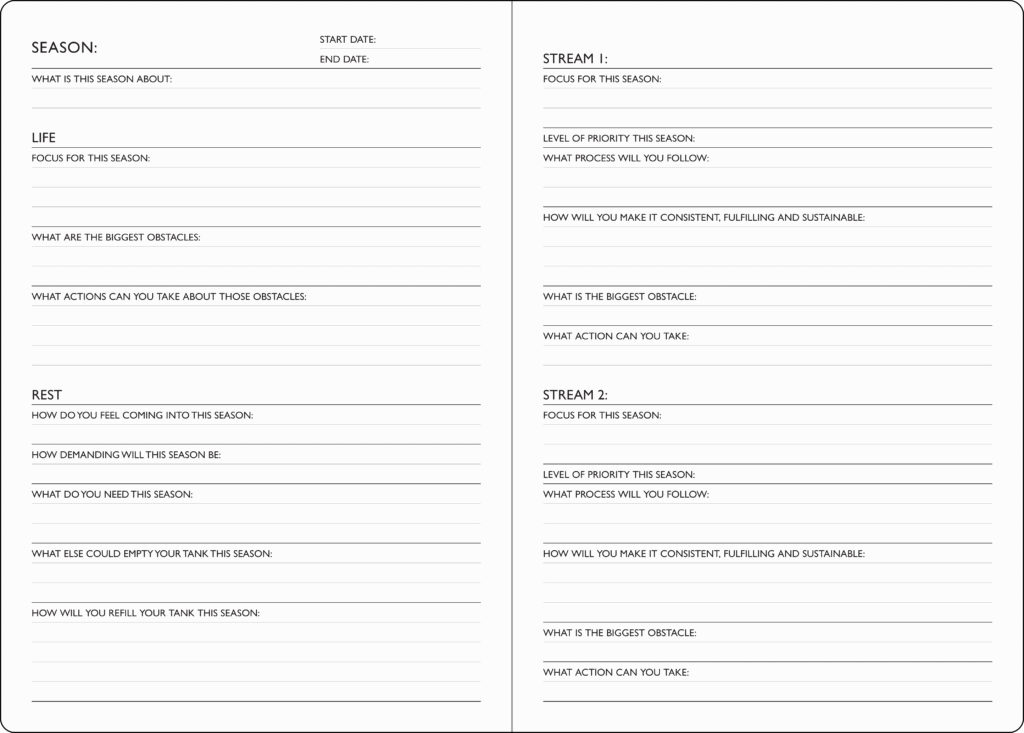 The Tend Planner includes exercises and prompts to help you better organise your life to support your passions, and your passions to support your life.